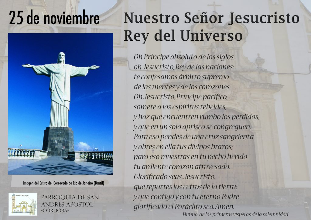 25-11 Nuestro Señor Jesucristo Rey del Universo25 noviembre, 2018Editorsantoral Comparte esto: Haz clic para compartir en X (Se abre en una ventana nueva) X Haz clic para compartir en Facebook (Se abre en una ventana nueva) Facebook Haz clic para compartir en WhatsApp (Se abre en una ventana nueva) WhatsApp Haz clic para compartir en Telegram (Se abre en una ventana nueva) Telegram Me gusta esto:Me gusta Cargando...